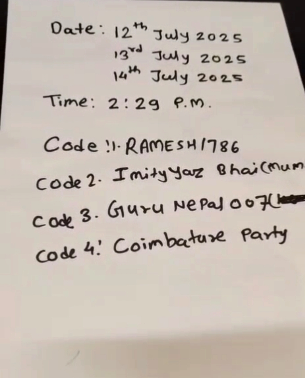 नोटा/कागद/मेसेजवर छोटासा कोड ठेवतात. तो सांगितल्यावर एजंट लगेच ओळख करतो—“खास” व्यवहाराची नांदी. उद्देश: टार्गेट फिल्टर + विश्वास निर्माण + गुप्त संप्रेषण.