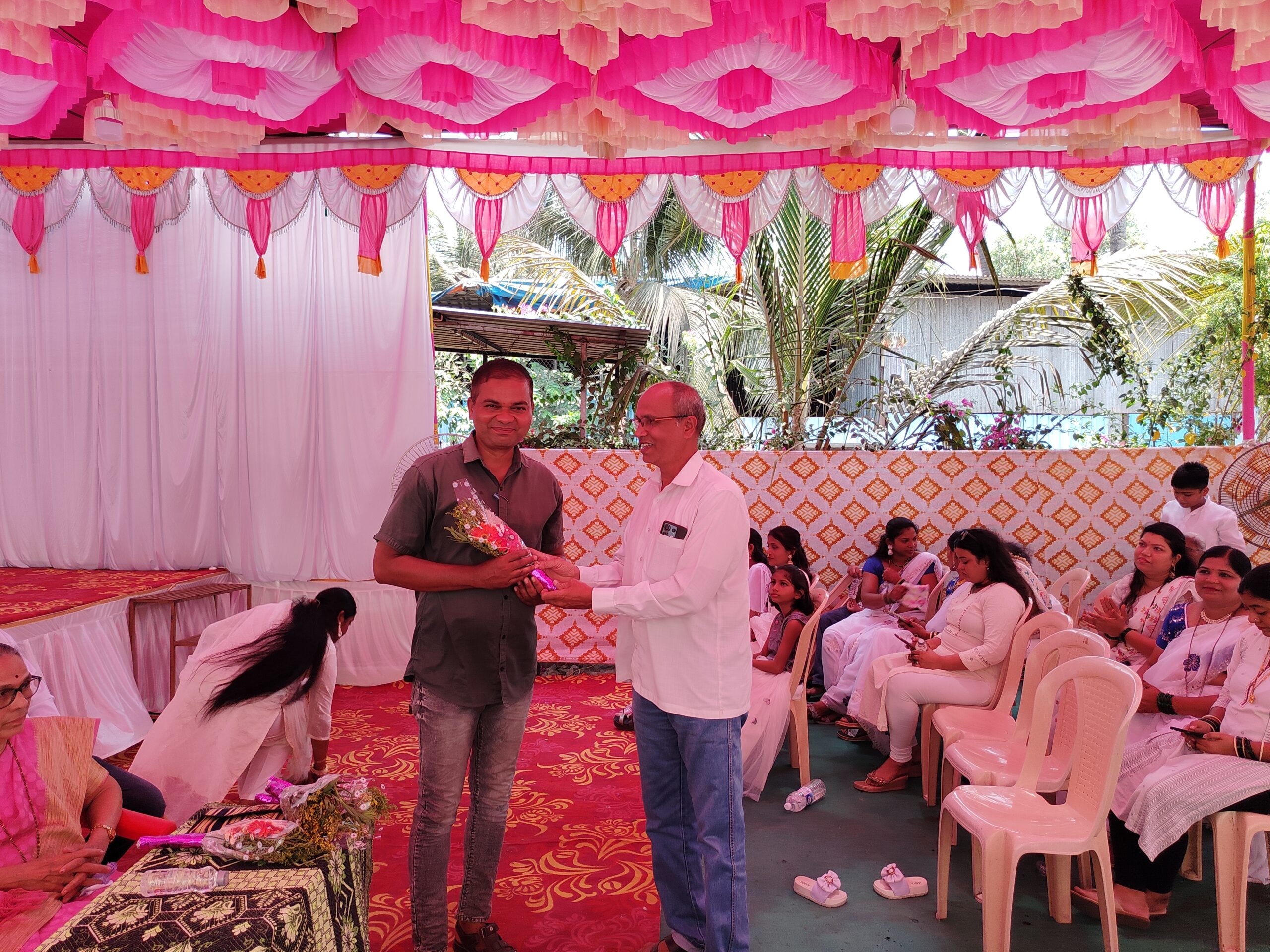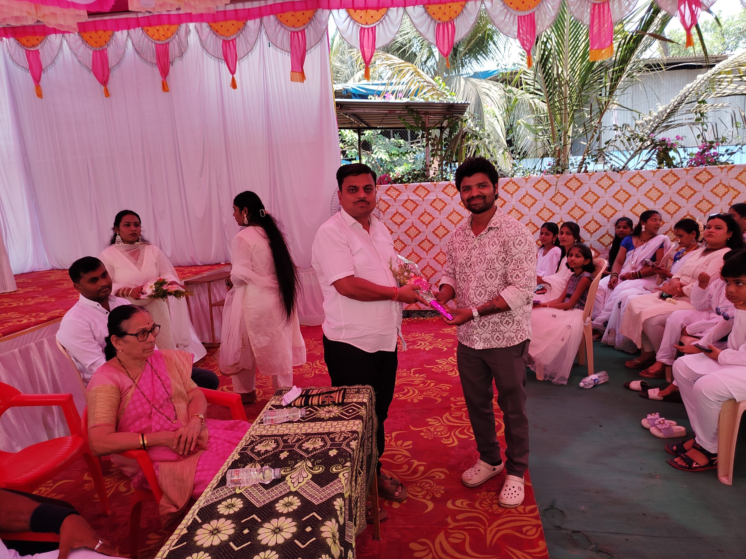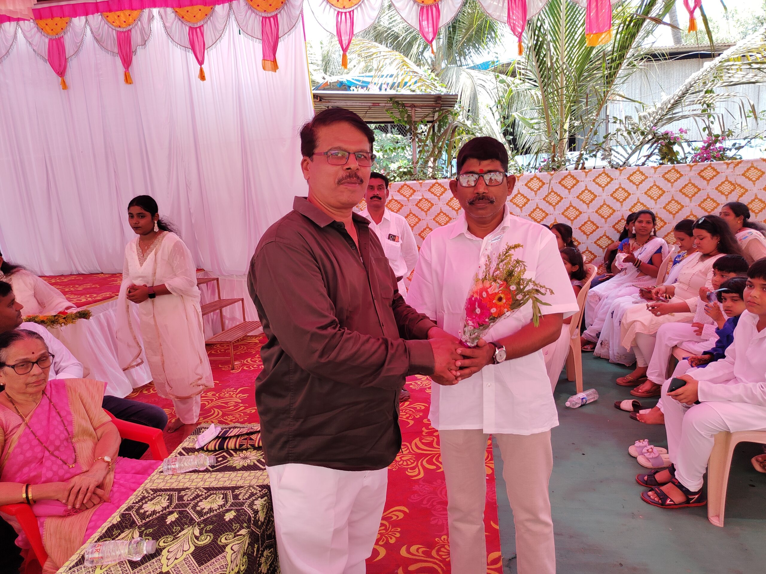 आजच्या कार्यक्रमास ग्रामपंचायत सदस्य संतोष मोरे, खलील तांडेल, सुराराम मोहनलाल माळी तसेच कार्यक्रमाचे अध्यक्ष सुरेश खोत, सुहास घोणे, सरोज वरसोलकर, अशोक नाईक, निलेश खोत, हर्षल घरत, शरद वरसोलकर आदी मान्यवर उपस्थित होते. उपस्थित मान्यवरांचे पुष्पगुच्छ देऊन स्वागत करण्यात आले.