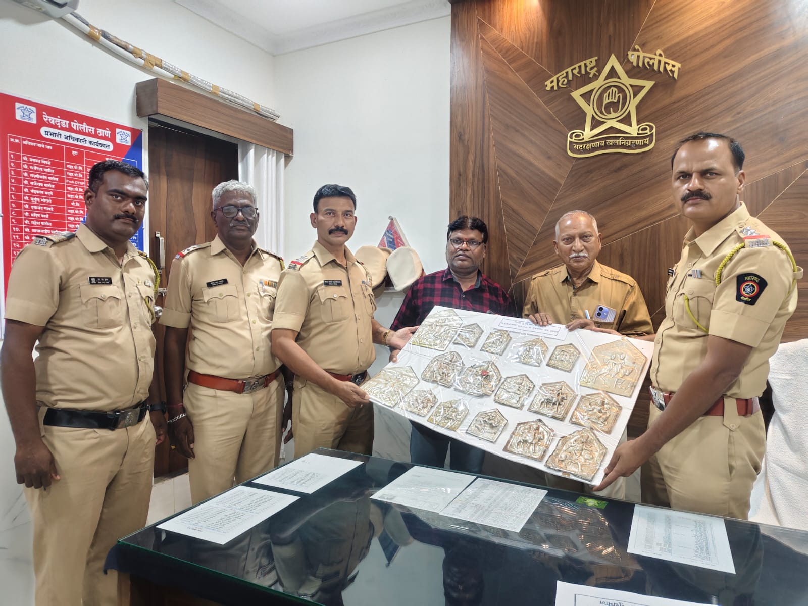 रेवदंडा पोलीस ठाण्याचे प्रभारी अधिकारी सपोनि श्री बी. के. जाधव यांच्या मार्गदर्शनाखाली तपास अधिकारी पोसई श्री डी. जे. म्हशिलकर व पोनि श्री देविदास मुपडे यांनी कौशल्यपूर्ण तपास करत संपूर्ण ₹1,60,800/- किमतीचा चांदीचा मुद्देमाल जप्त करून तो फिर्यादी गोरक्षनाथ लक्ष्मण नवरीकर, रा. थेरोंडा, खंडेराव पाडा यांना परत केला असून संबंधित मंदिर व कुलदैवतांची व्यवस्था स्थानिक ट्रस्टमार्फत केली जाते आणि थेरोंडा ग्रामस्थांनी पोलीस प्रशासनाच्या कामगिरीचे कौतुक करत समाधान व्यक्त केले आहे.