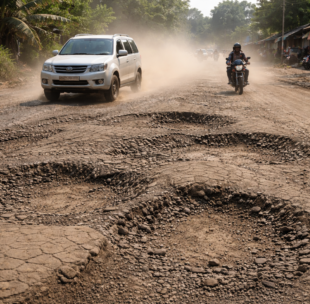 अलिबाग – कुरुळ ते बेलकडे हा रस्ता सर्वार्थाने जीवघेणा ठरू लागला आहे. रोड टॅक्स भरतो, PUC काढतो, नियम पाळतो, पण तरीही रस्ताच नाही असा संतप्त प्रश्न आता सामान्य प्रवासी, पर्यटक आणि ग्रामस्थ विचारू लागले आहेत. रस्त्यावर खड्डेच खड्डे असून वाहनं उजवीकडे डावीकडे टाकत जातात. प्रवास म्हणजे आट्या-पाट्यांचा खेळ झाल्यासारखं दृश्य दिसत आहे. उखडलेल्या रस्त्यातून उठणारे धुळीचे लोळ दृष्टी अस्पष्ट करतात. दोन फूट पुढे दिसत नाही. धूळ श्वासात जात असल्याने दम्याचे रुग्ण, ज्येष्ठ नागरिक, लहान मुलांमध्ये सर्दी-खोकल्याचा त्रास वाढत आहे. दैनंदिन प्रवास करणाऱ्या कामगारांनाही त्रास सहन करावा लागतो. रस्त्यावरून जाणारी प्रत्येक दुचाकी धक्क्यांनी उडते आणि परत चारपट जोराने जमिनीवर आपटते. दहा मिनिटांचा प्रवास अर्धा-पाऊण तास घेतो. पर्यटक म्हणतात, आम्ही कर, टॅक्स, PUC सगळं भरतो, मग प्रशासन जबाबदारी का पाळत नाही.