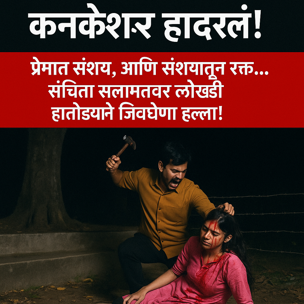 рджреЛрдШреЗ рдХрдирдХреЗрд╢реНрд╡рд░ рдордВрджрд┐рд░рд╛рдЪреНрдпрд╛ рдкрд╛рдпрд▒реНрдпрд╛рдВрдЬрд╡рд│реАрд▓ рд╡рдбрд╛рдЪреНрдпрд╛ рдЭрд╛рдбрд╛рдЦрд╛рд▓реА рдмрд╕рд▓реЗ рдЕрд╕рддрд╛рдирд╛, рд╕реБрд░рдЬрдЪреНрдпрд╛ рдордирд╛рдд рд╕рдВрд╢рдпрд╛рдЪреА рдард┐рдгрдЧреА рдкреЗрдЯрд▓реА┬а рддреБрд▓рд╛ рдЖрддрд╛ рдард╛рд░рдЪ рдорд╛рд░рддреЛ рдЕрд╕реЗ рдореНрд╣рдгрдд рддреНрдпрд╛рдиреЗ рдмрд╛рдЧреЗрддреВрди рд╣рд╛рддреЛрдбрд╛ рдХрд╛рдврдд рд╕рдВрдЪрд┐рддрд╛ рджреБрд╕рд▒реНрдпрд╛ рд╡реНрдпрдХреНрддреАрд╢реА рдмреЛрд▓рдд рдЕрд╕рд▓реНрдпрд╛рдЪрд╛ рд╕рдВрд╢рдп рдШреЗрдКрди рддреНрдпрд╛ рдХреНрд╖рдгреАрдЪ рддреЛ рд▓реЛрдЦрдВрдбреА рд╣рд╛рддреЛрдбрд╛ рдЙрдЪрд▓реВрди рддрд┐рдЪреНрдпрд╛ рдбреЛрдХреНрдпрд╛рд╡рд░ рд╡ рдХрдкрд╛рд│рд╛рд╡рд░ рд╡рд╛рд░ рдХрд░реВ рд▓рд╛рдЧрд▓рд╛.