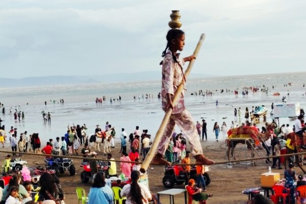 अलिबागच्या वाळूत लहान ‘शोभायात्रा पोटासाठी दोरीवर नाचणारी बालजीवनाची तारेवरची कसरत छावा डिजिटल न्यूज पोर्टल –सचिन मयेकर–अलिबाग शनिवार २५ ऑक्टोबर २०२५ किनाऱ्याच्या एका टोकाला दोन लाकडी त्रिकोणांना दोरी बांधून, त्यावरून एक छोटीशी, साधारण दहा वर्षांची मुलगी पायात ताटली घेऊन चालत होती. कधी टायरवरून फिरत, कधी तारेवरची कसरत दाखवत ती आपला संसार चालवण्यासाठी प्रेक्षकांचे लक्ष वेधून घेत…